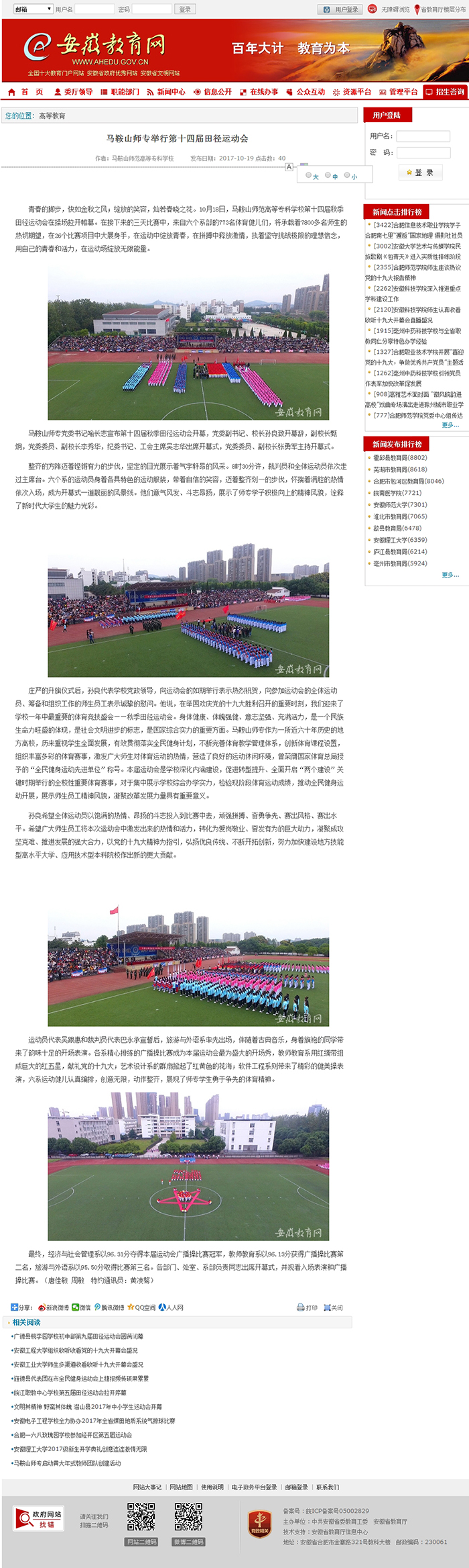 【安徽教育网】马鞍山师专举行第十四届田径运动会