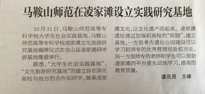 【马鞍山日报】马鞍山师范在凌家滩设立实践研究基地