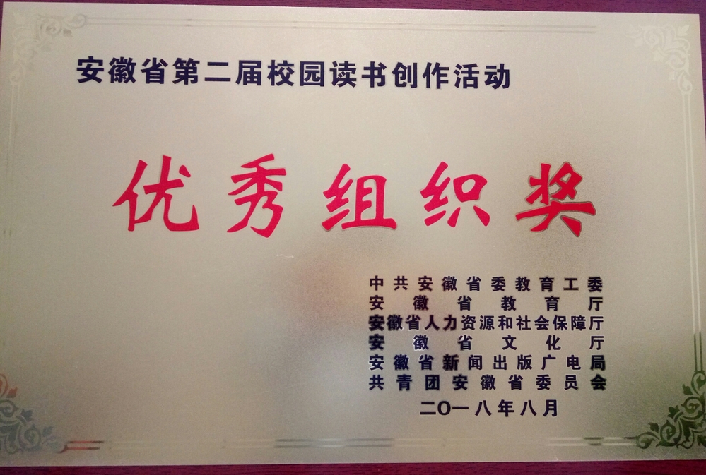 学校在安徽省第二届校园读书创作活动中荣获优秀组织奖
