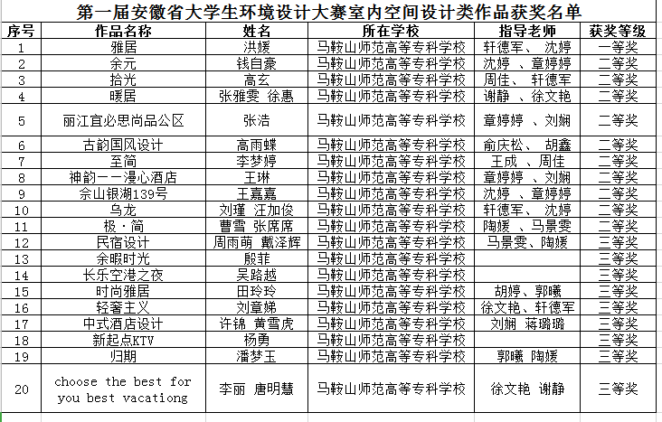 喜报:祝贺贝博官网学子在第一届安徽省大学生环境设计大赛获得一等奖2项,二等奖14项,三等奖21项。