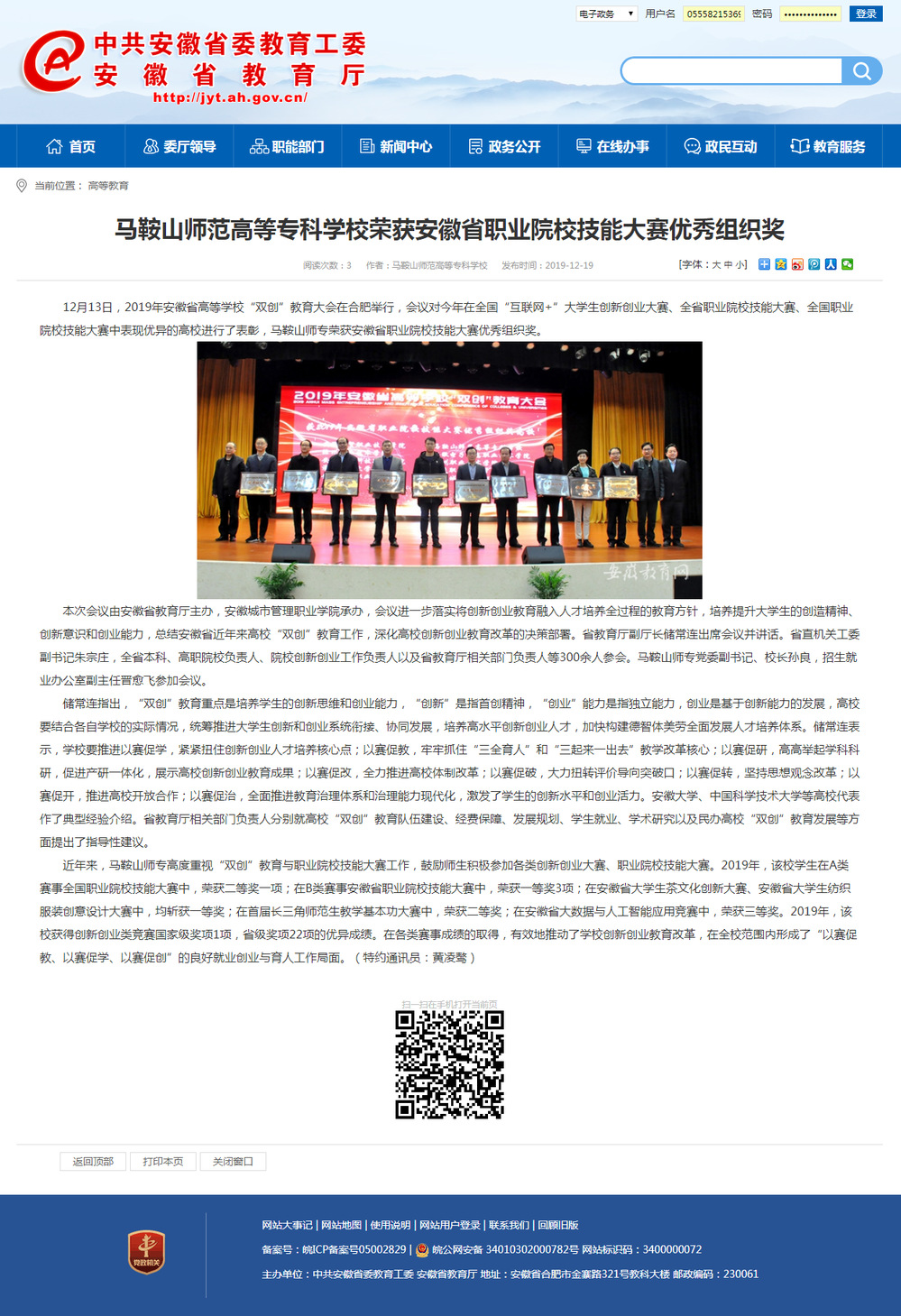 【安徽教育网】BB贝博艾弗森原官方网站荣获安徽省职业院校技能大赛优秀组织奖