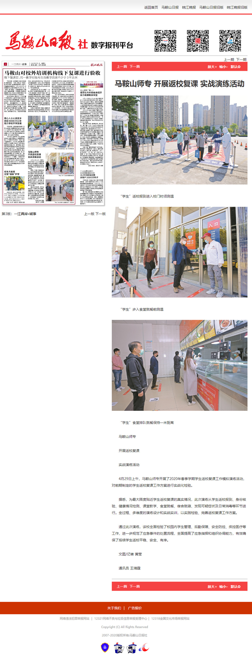 【马鞍山日报】马鞍山师专 开展返校复课 实战演练活动