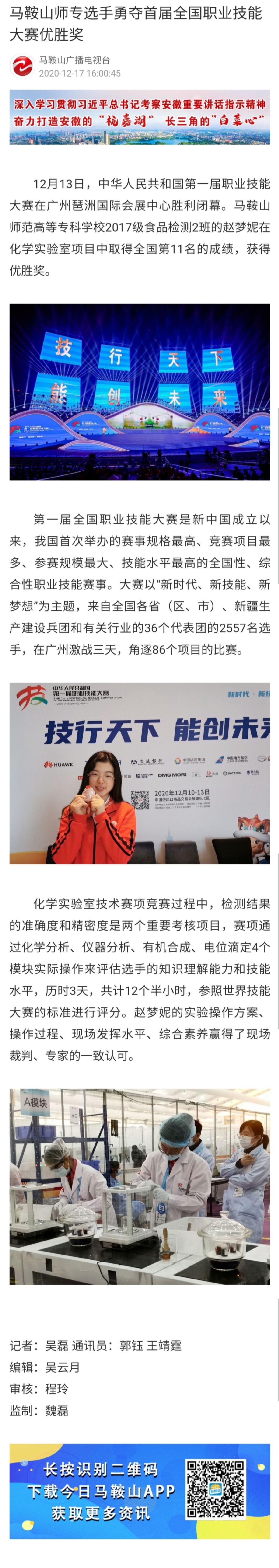 马鞍山师专选手勇夺首届全国职业技能大赛优胜奖