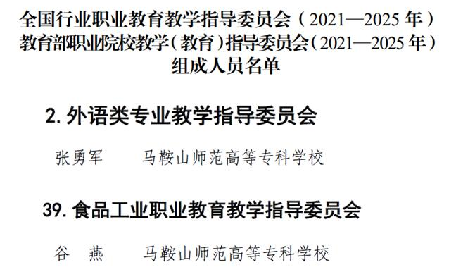 热烈祝贺贝博官网张勇军获选教育部职业院校教学(教育)指导委员会委员;谷燕获选全国行业职业教育教学指导委员会委员。