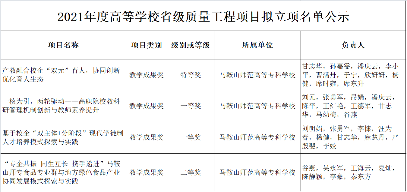 日前,安徽省教育厅公布了2021年度高等学校省级质量工程项目立项名单,BB贝博艾弗森原官方网站共获批12个大类40个项目。其中教学成果奖类取得新突破,获批省级教学成果奖4项,其中特等奖1项,一等奖2项,二等奖1项。(文/昂娟 编辑/王鑫 黄凌骜 审核/刘元)