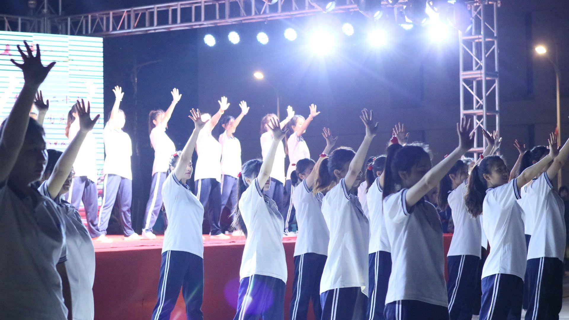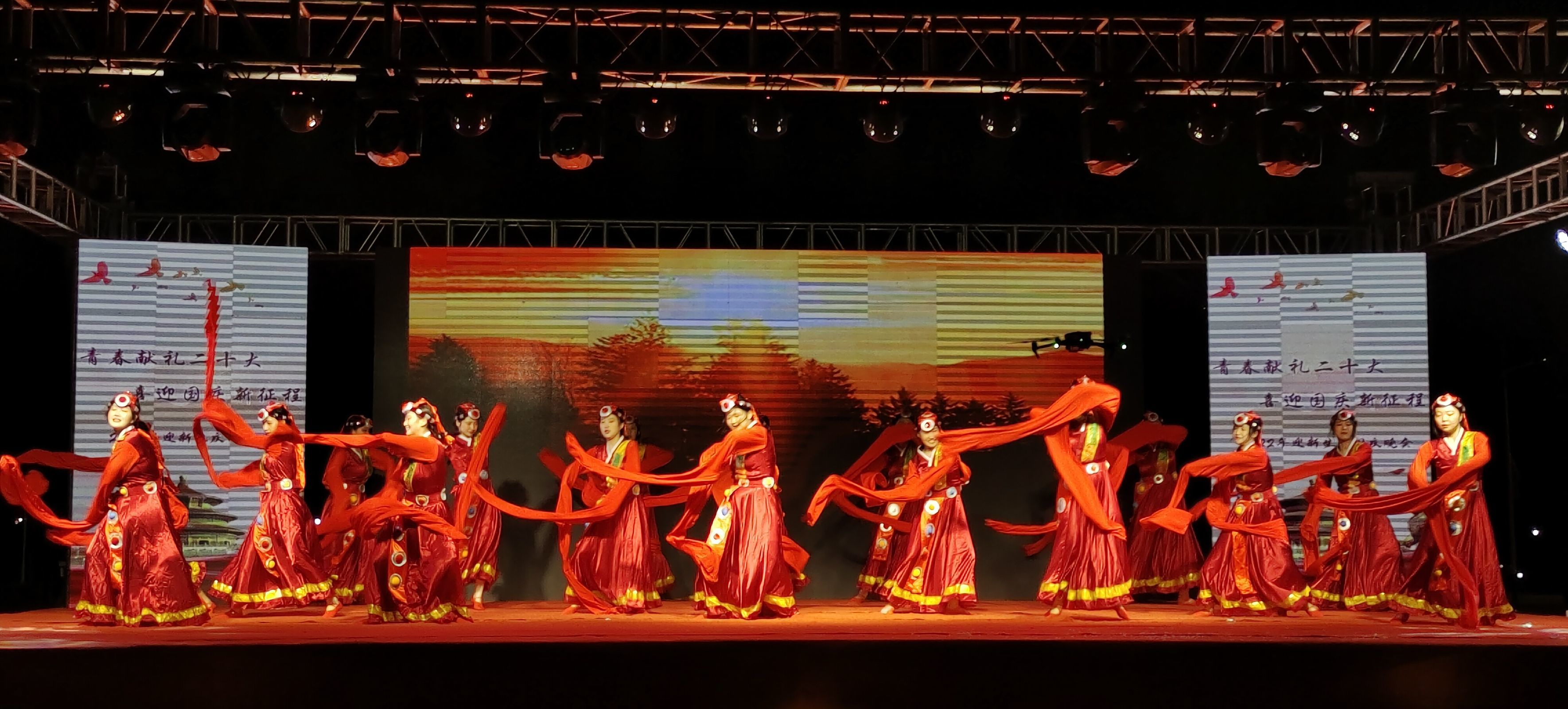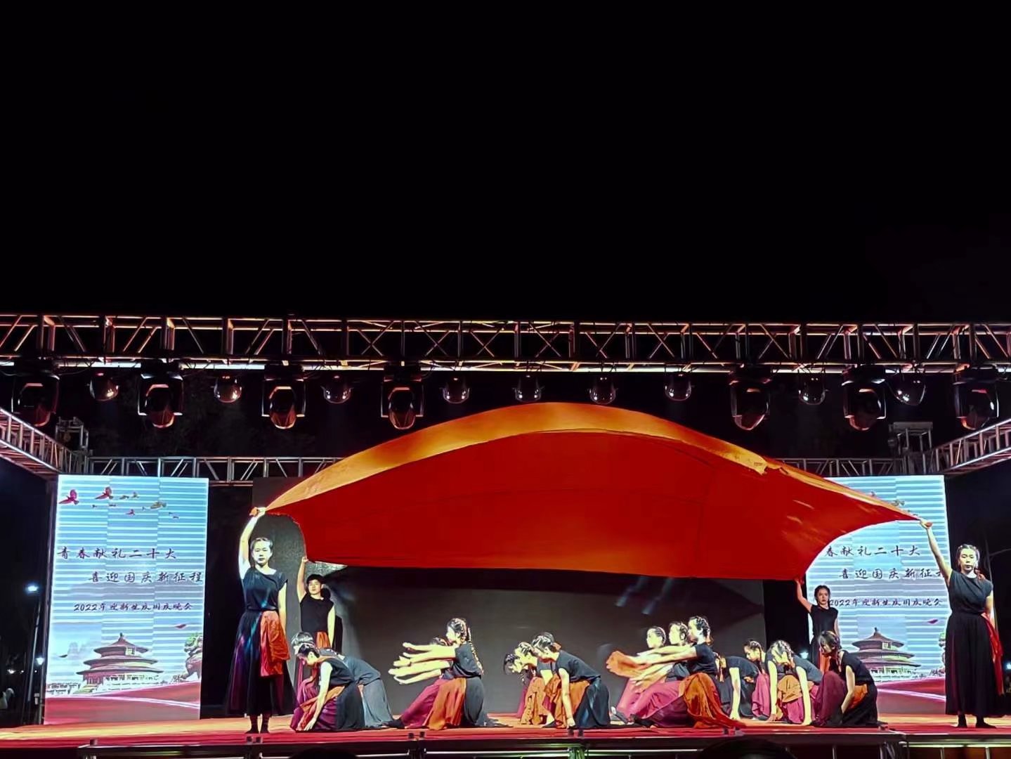 青春如火,初心似炬。为迎接党的二十大胜利召开,礼赞祖国73周年华诞,以良好的精神面貌向党的二十大献礼,进一步提高学生热爱党、热爱祖国的炽热情感,同时展现BB贝博艾弗森原官方网站青年学生积极向上的青春风貌,9月29日晚,“青春献礼二十大·喜迎国庆新征程”暨2022年迎新生、庆国庆文艺晚会在滨江校区红旗广场盛大举办。学工部部长、学生处处长汪志彬,校团委副书记、保卫处副处长张国平,滨江管理处副处长王文峰、高静、马颖,学前教育学院副院长黄夕梅、各系部(学院)团总支书记以及2022级全体新生一同观看演出。