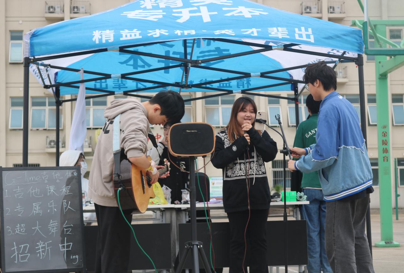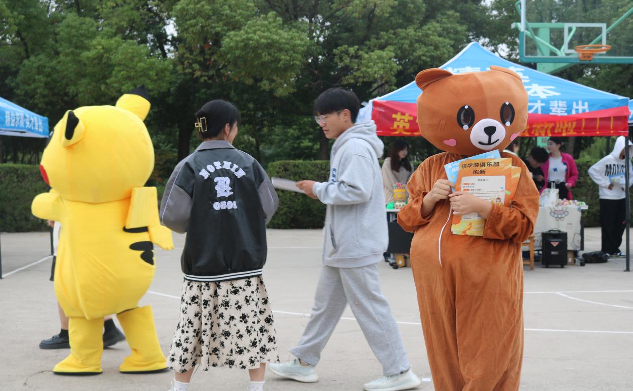 “社团风采展”——展青年自立形象,共同携手成长。10月5日,团委于篮球场举办社团风采展和纳新活动,伴随着吉他社带来的动听音乐,各类社团的精彩表演陆续呈现。丹青社展示的剪纸、书法、国画,翠螺茶艺社带来的茶艺文化等作品体现了中华传统文化的深厚底蕴,同学们汇聚到篮球场中央,观看表演,了解社团宗旨,与同学互动交流,校园节日氛围浓厚。
