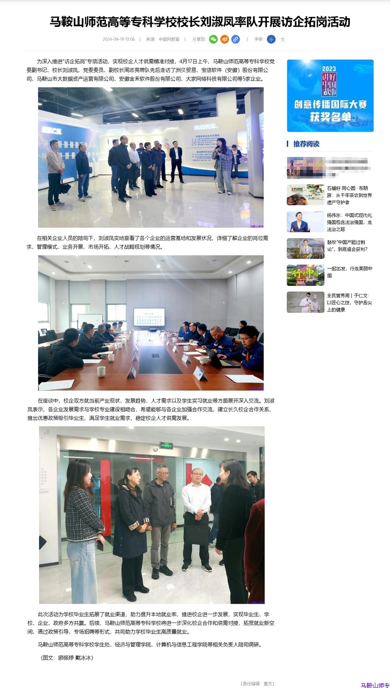 【中国网】BB贝博艾弗森原官方网站校长刘淑凤率队开展访企拓岗活动