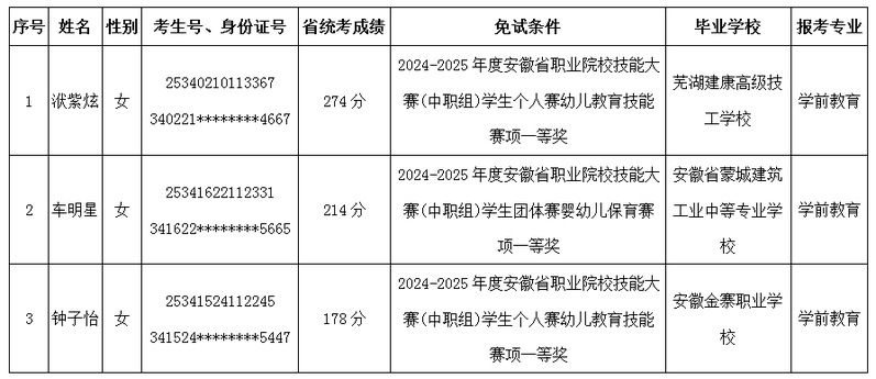 根据有关文件精神和贝博官网2025年分类考试招生章程有关规定,报考贝博官网与获奖赛项相同或相近专业且文化素质测试合格的考生可免试录取。经过个人申请、资格审核,现将贝博官网2025年分类考试招生面向中职生免试录取情况公示如下。如有异议,请拨打招生办电话0555-8215015或学校监察审计处电话0555-8215236。公示时间:2025年3月19日—3月21日。