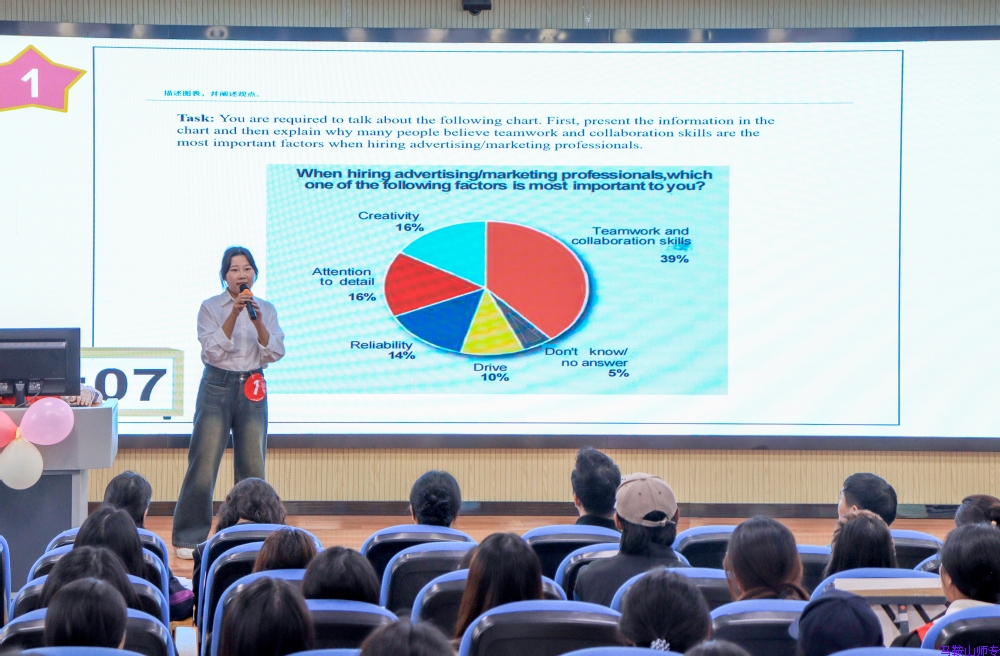 赛程全程紧张激烈,两个组别的选手均表现出较好的专业素养。最终,来自外国语学院2024级小学英语教育专业的孙晓凡同学荣获专业组一等奖,来自教师教育学院2024级小学数学教育专业的侯思羽同学荣获非专业组一等奖。学校将继续以赛事为载体,探索外语教学创新路径,为培养具备国际视野、专业素养的应用型人才持续发力。(图文/洪琦琦 胡振宇 王子腾 高默含 张延 孙婷婷 王梦梦 一审/洪琦琦 二审/黄凌骜 三审/丁永华)