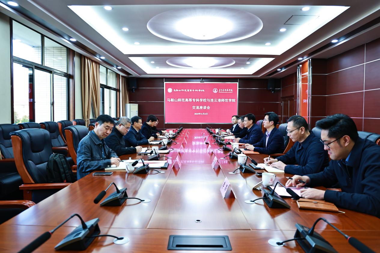 参观结束后,双方召开专题座谈会,围绕学校高质量发展、“十五五”规划编制、产教融合创新等议题展开深入探讨。杨浩分享了连云港师范学院的发展战略,包括优化人才培养体系、强化学科交叉创新及对接地方产业需求。他表示将继续开放共享平台,推动长三角区域教育协同发展。