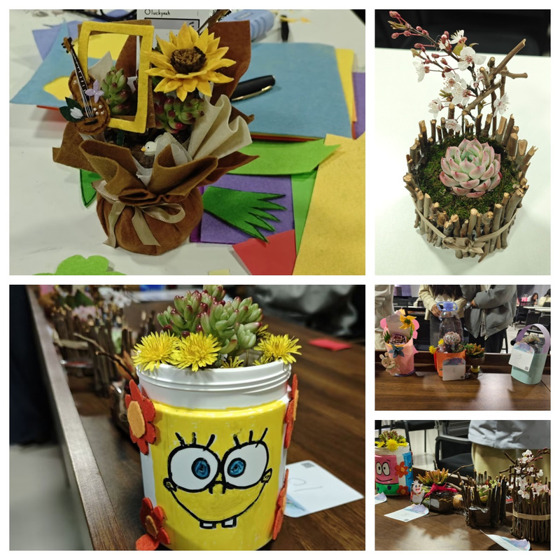 “平时学习压力大,亲手种一盆绿植特别治愈。”参与活动的程同学表示。活动尾声,同学们手捧作品合影留念,一盆盆生机盎然的微景观为室内空间注入融融春意。